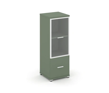 - Офисный шкаф с стеклянными дверями в алюминиевой рамке