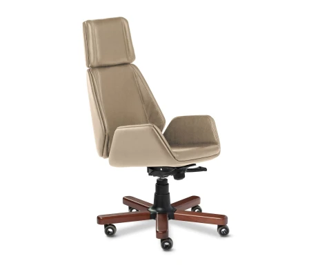 Деревянные детали крестовины и ручек имеют не только практическое значение. Это просто красиво, каждый из нас тянется к натуральному не только в стенах дома, но и на работе. Деревянные накладки на базе и деревянные подлокотники добавляют уюта и индивидуальности стилю этой модели, к тому же обеспечивают высокие тактильные свойства, прикосновения к деревянной фактуре всегда приятны, ведь оно имеет высокую степень теплопроводности.