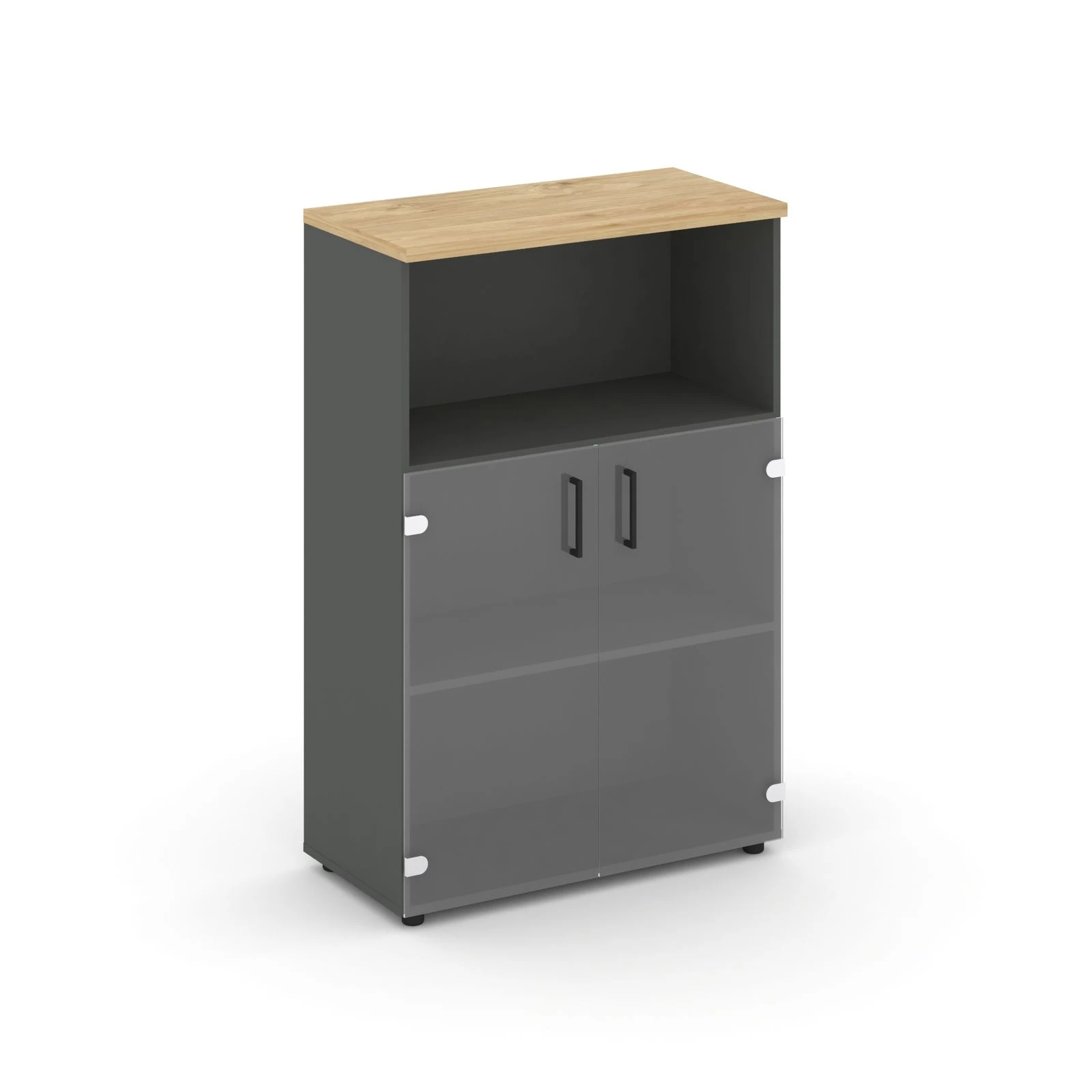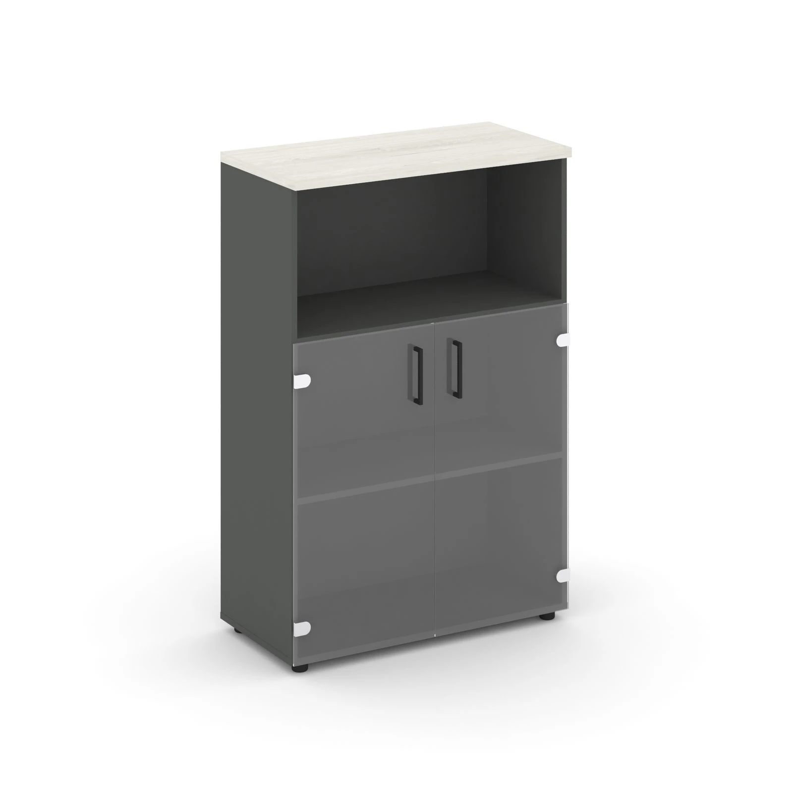 Шкаф средний широкий прозр. стекло с нишей 796x400x1203 зад. стенка HDF Стайл Проджект / Style Project