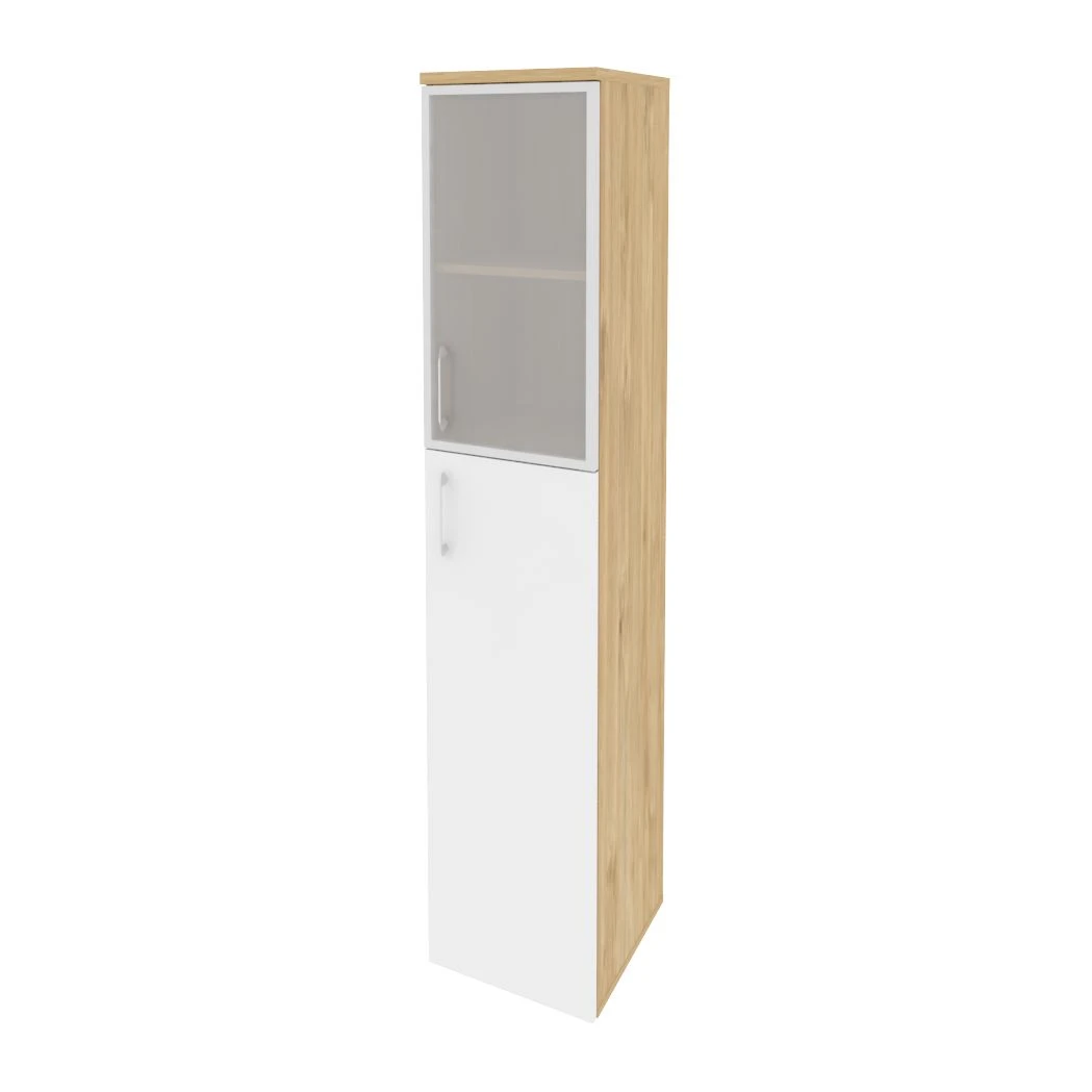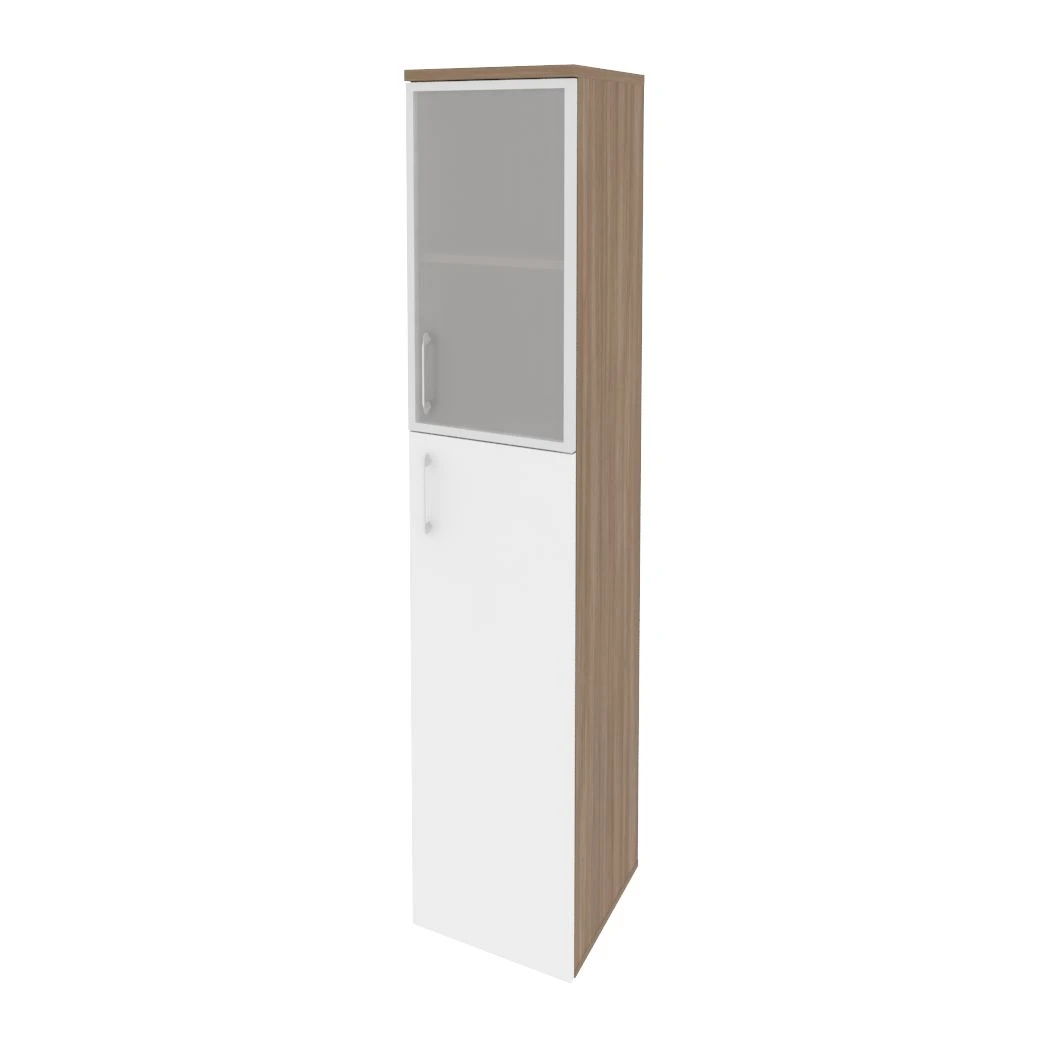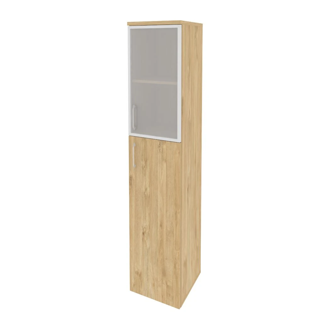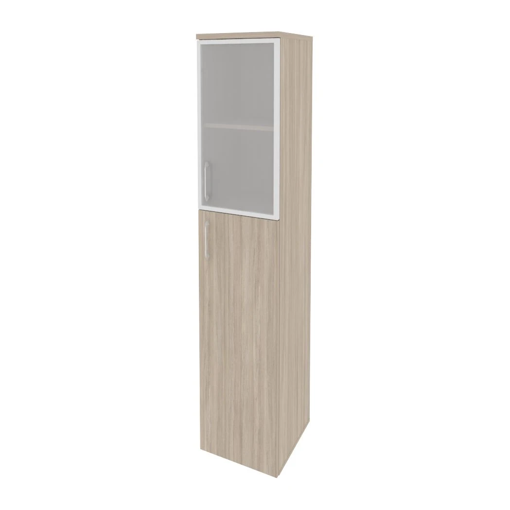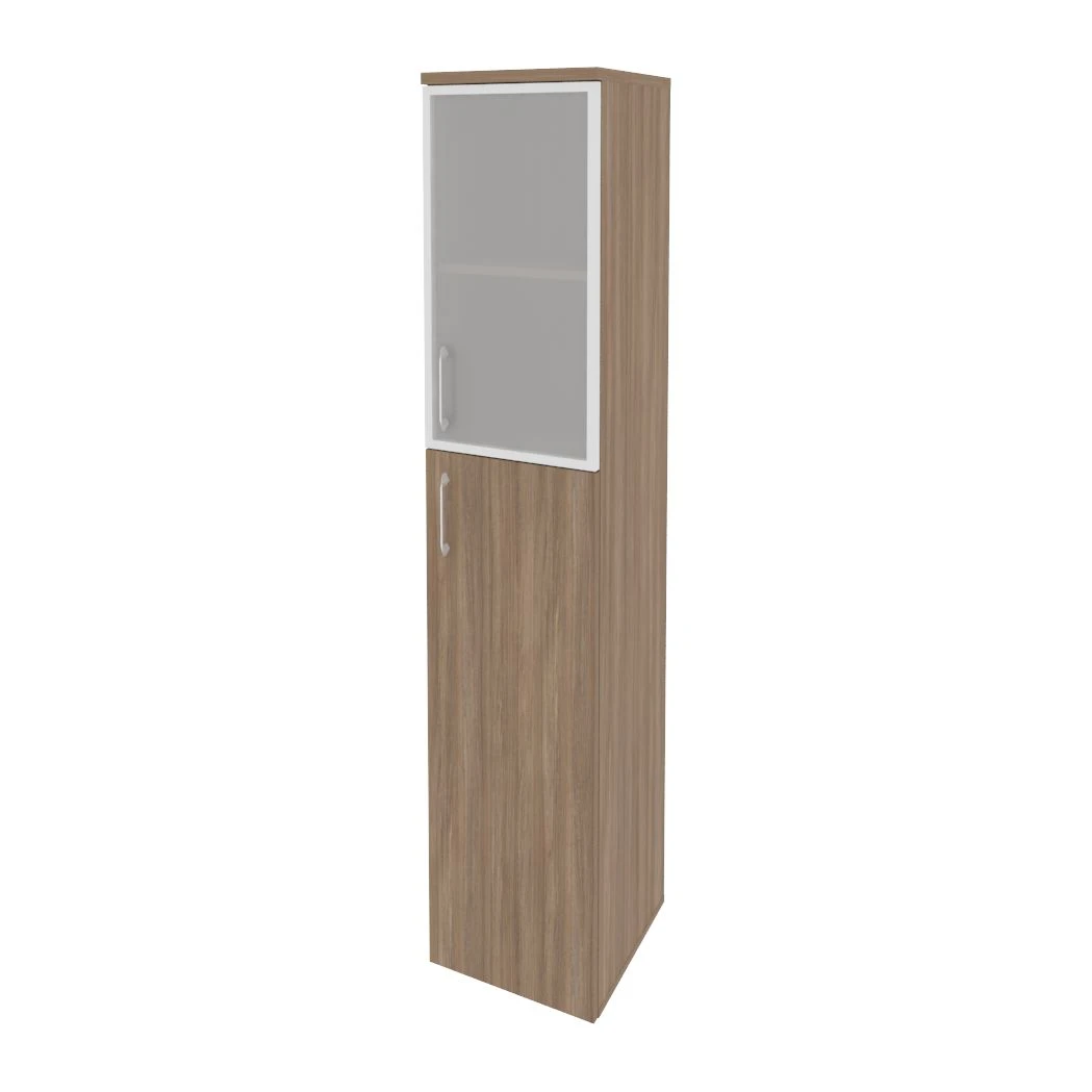 Шкаф высокий узкий правый (1 средний фасад ЛДСП + 1 низкий фасад стекло в раме) 400x420x1977 Оникс / Onix