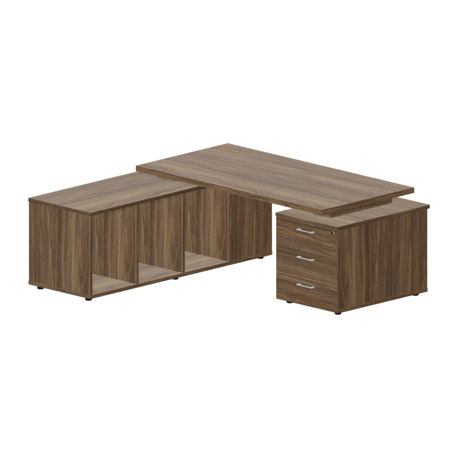 Стол руководителя на 2-х опорных тумбах (левый) 180х180x73,5 Норман / Norman Орех