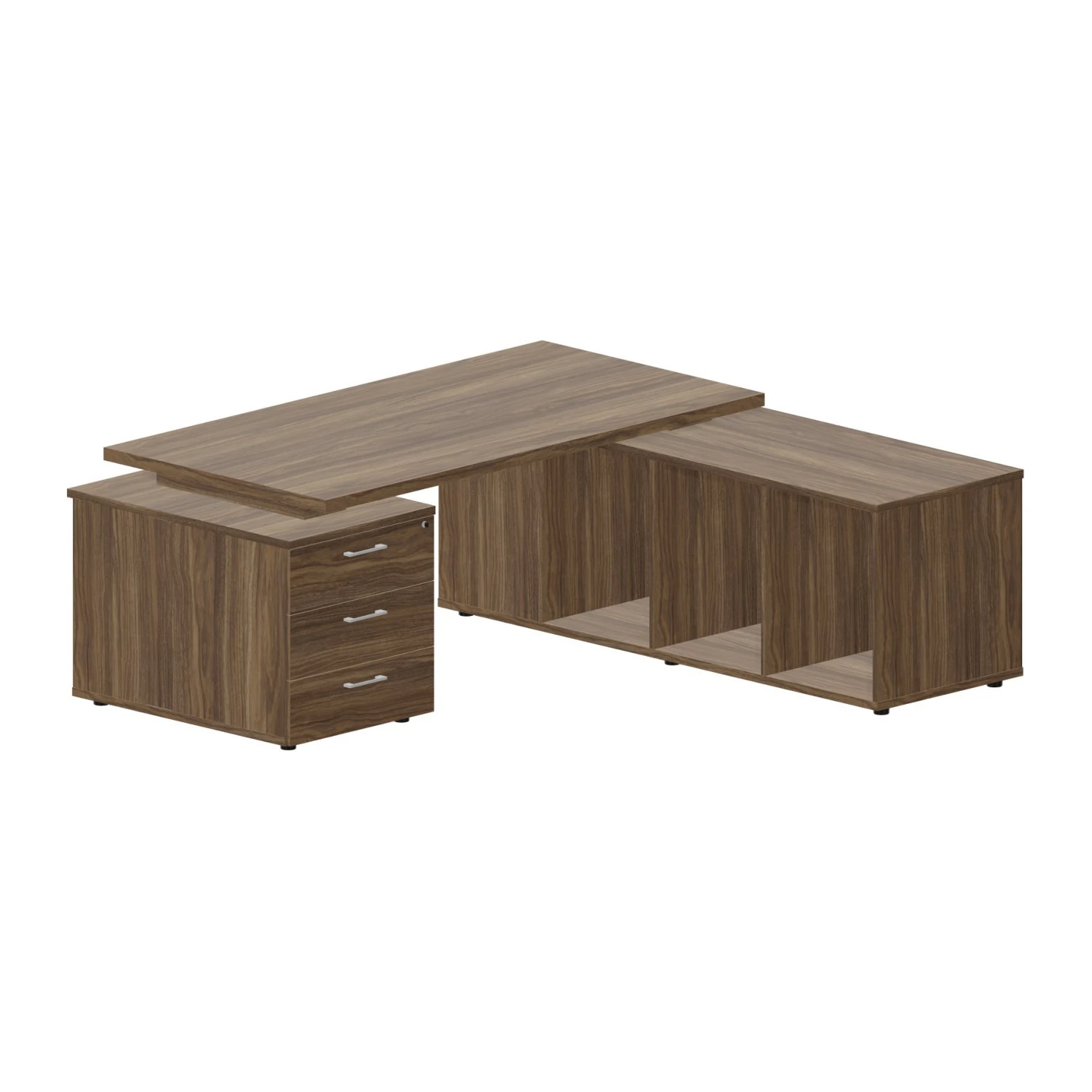 Стол руководителя на 2-х опорных тумбах (правый) 180х180x73,5 Норман / Norman Орех